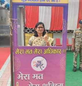 कलेक्टर एवं जिला निर्वाचन अधिकारी श्रीमती रुचिका चौहान ने ग्वालियर पूर्व विधानसभा क्षेत्र के अंतर्गत केन्द्रीय विद्यालय क्रमांक- 1 में बने मतदान केन्द्र क्रमांक 124 पर पहुंचकर अपने मताधिकार का उपयोग किया। उन्होंने जिले के मतदाताओं से अपील की है कि वे अपना वोट डालकर संविधान प्रदत्त अधिकार का उपयोग अवश्य करें।