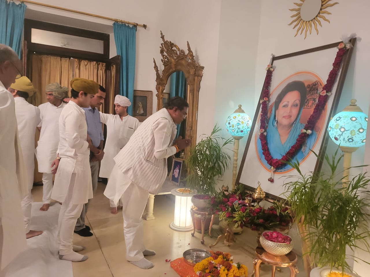 ग्वालियर। केन्द्रीय मंत्री ज्योतिरादित्य सिंधिया की पूज्य माताश्री स्व. राजमाता माधवीराजे सिंधिया के निधन के बाद से ही रानीमहल में उन्हें श्रद्धांजलि अर्पित करने वालों की भीड़ लगी है। इसी क्रम में शुक्रवार को केन्द्रीय मंत्री एवं मंडला से भाजपा के लोकसभा उम्मीदवार फग्गन सिंह कुलस्ते ग्वालियर आये। ग्वालियर आकर वह सीधे रानीमहल पहुंचे और स्व. राजमाता साहब को श्रद्धासुमन अर्पित किये। उन्होंने इस दौरान स्व. राजमाता के सुपुत्र ज्योतिरादित्य सिंधिया को सांत्वना देकर ढांढस भी बंधाया। इस दौरान केन्द्रीय मंत्री कुलस्ते के साथ वरिष्ठ भाजपा नेता मुरैना हरीश सेवाराम गुप्ता, जनसेवक पंकज राजकुमार बंसल भी थे।