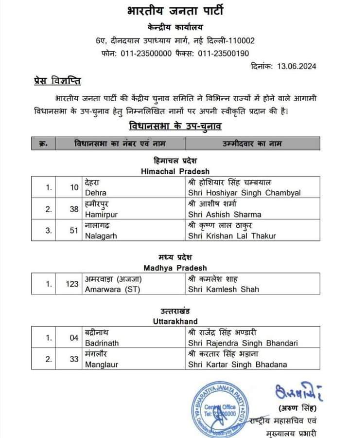 featuredराष्ट्रीयअमरवाड़ा उपचुनाव: कमलेश शाह BJP प्रत्याशी घोषित Bhaskar Plus2 years ago2 years ago01 mins भारतीय जनता पार्टी की केंद्रीय चुनाव समिति ने मध्य प्रदेश की अमरवाड़ा विधानसभा के उपचुनाव हेतु कमलेश शाह को प्रत्याशी घोषित किया। Share Tweet Share Post navigation Previous: सिंधिया की राज्यसभा सीट रिक्त घोषित, रेस में ये नामNext: दतिया में ट्रैक्टर-ट्रॉली पलटी; मां-बेटियाें समेत पांच की मौत और 19 घायल