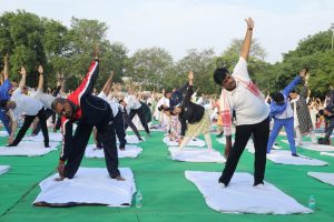 दसवे अंतरराष्ट्रीय योग दिवस पर उद्यानिकी , खाद्य प्रसंस्करण एवं सामाजिक न्याय मंत्री श्री नारायण सिंह कुशवाह के मुख्य आतिथ्य में आईआईटीटीएम में भव्यता के साथ जिला स्तरीय कार्यक्रम का आयोजन हुआ। आयोजन में सांसद भारत सिंह कुशवाह भी शामिल हुए।