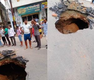 ये कैसी स्मार्ट सिटी?, जनक हास्पीटल के पास रोड धंसी, बड़ा गडढा हुआ