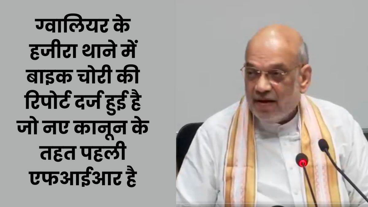 ग्वालियर। नए कानून के तहत देश भर में पहला मामला ग्वालियर के हजीरा थाने में दर्ज किया गया। यह जानकारी केंद्रीय गृह मंत्री अमित शाह ने दी है। भारतीय न्याय संहिता लागू होते ही ग्वालियर के हजीरा थाने में रात 12.24 बजे जिले की पहली एफआईआर बाइक चोरी की दर्ज हुई। हालांकि अमित शाह ने नए कानून के तहत एफआईआर दर्ज करने का समय रात 12.10 का बताया है।