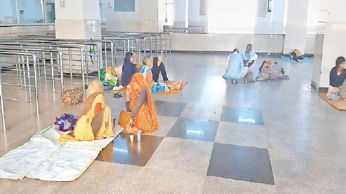 हजार बिस्तर अस्पताल की धर्मशाला पर ताला, बारिश में पर्चा काउंटर के पास ठहरने को मजबूरी अटेंडेंट