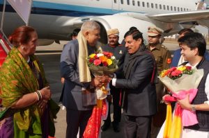 ग्वालियर। उप राष्ट्रपति जगदीप धनखड़ रविवार को वायुसेना के विमान से ग्वालियर एयरबेस पर प्रात: लगभग 10.45 पधारे। उप राष्ट्रपति के साथ केन्द्रीय संचार एवं पूर्वोत्तर क्षेत्र विकास मंत्री ज्योतिरादित्य सिंधिया ग्वालियर आए। विमानतल पर राज्यपाल मंगुभाई पटेल, मुख्यमंत्री डॉ. मोहन यादव एवं विधानसभा अध्यक्ष नरेन्द्र सिंह तोमर ने पुष्प-गुच्छ भेंट कर उप राष्ट्रपति का आत्मीय स्वागत किया। उप राष्ट्रपति के साथ उनकी धर्मपत्नी श्रीमती सुदेश धनखड़ भी आईं।