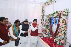 ग्वालियर । मुख्यमंत्री डॉ. मोहन यादव ने न्यू कॉलोनी कांचमिल हजीरा स्थित ऊर्जा मंत्री प्रद्युम्न सिंह तोमर के निवास पर पहुँचकर उनके ज्येष्ठ भ्राता देवेन्द्र सिंह तोमर के निधन पर शोक संवेदना व्यक्त की। उन्होंने स्व. देवेन्द्र सिंह तोमर के चित्र पर श्रद्धा-सुमन अर्पित कर उन्हें श्रद्धांजलि प्रदान की। साथ ही ऊर्जा मंत्री श्री तोमर सहित शोक संतृप्त परिवार को ढांढस बंधाया और सांत्वना प्रदान की। मुख्यमंत्री के साथ जिले के प्रभारी एवं जल संसाधन मंत्री तुलसीराम सिलावट भी स्व. देवेन्द्र तोमर को श्रद्धांजलि अर्पित करने पहुँचे।