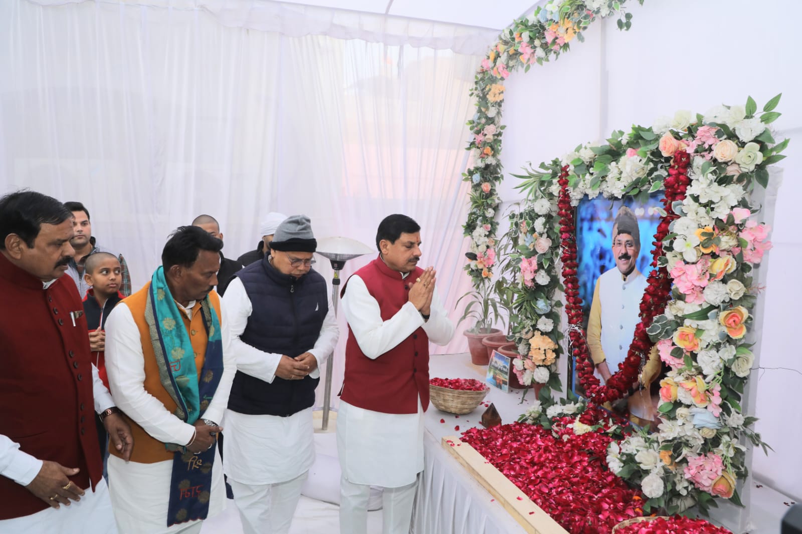 मुख्यमंत्री डॉ. यादव ने स्व. देवेन्द्र सिंह तोमर को श्रद्धांजलि अर्पित करते हुए कहा कि उनका सम्पूर्ण जीवन जन सेवा के प्रति समर्पित रहा। वे तीन बार नगर निगम परिषद में पार्षद और नेता प्रतिपक्ष रहे और वे जनता में अत्यंत लोकप्रिय थे। उनका असमय निधन हम सबके लिए अपूरणीय क्षति है और हमेशा उनकी कमी महसूस होगी। मुख्यमंत्री डॉ. यादव ने बाबा महाकाल से दिवंगत पुण्यात्मा की शान्ति और शोकाकुल परिवार को यह वज्रपात सहन करने की शक्ति प्रदान करने की प्रार्थना की। इस दौरान भाजपा जिला अध्यक्ष शहर अभय चैधरी व ग्रामीण कौशल शर्मा, अशोक शर्मा ने भी स्व. देवेन्द्र सिंह तोमर को श्रद्धासुमन अर्पित किये। गौरतलब है कि ऊर्जा मंत्री श्री तोमर के बड़े भाई देवेन्द्र सिंह तोमर का गत 8 दिसम्बर की रात भोपाल के चिरायु हॉस्पिटल में इलाज के दौरान निधन हो गया था। स्व. देवेन्द्र सिंह तोमर अपने पीछे मां और पत्नी के अलावा ऊर्जा मंत्री प्रद्युम्न सिंह तोमर सहित दो भाई, एक पुत्र, एक विवाहित बेटी व दो भतीजे और एक भतीजी के रूप में भरा-पूरा परिवार छोड़कर गए हैं।