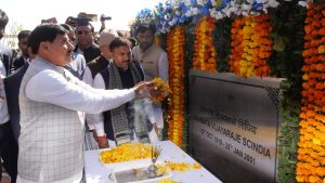 ग्वालियर. मुख्यमंत्री डॉ मोहन यादव ने आज ग्वालियर आगमन के बाद राजमाता स्व. विजयाराजे सिंधिया की पुण्यतिथि पर श्रद्धा सुमन अर्पित किए। उन्होंने ग्वालियर एयर टर्मिनल परिसर में स्थापित राजमाता विजयाराजे सिंधिया की प्रतिमा पर पुष्पांजलि अर्पित कर उन्हें श्रद्धांजलि प्रदान की।