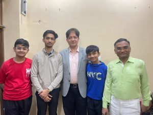 ग्वालियर। देश के प्रसिद्ध और ग्वालियर के गौरव प्रख्यात ह्रदय रोग विशेषज्ञ डा. जमाल यूसुफ शनिवार को ग्वालियर आये। ग्वालियर आगमन के पश्चात डा. जमाल नया बाजार स्थित वरिष्ठ समाजसेवी स्व. राजकुमार बंसल के आवास पर पहुंचे और उनके सुपुत्र जनसेवक धीरज राजकुमार बंसल और पंकज राजकुमार बंसल से सौजन्य भेंट की। जनसेवक बंसल ने इस दौरान डा. जमाल यूसुफ का अभिनंदन भी किया।
