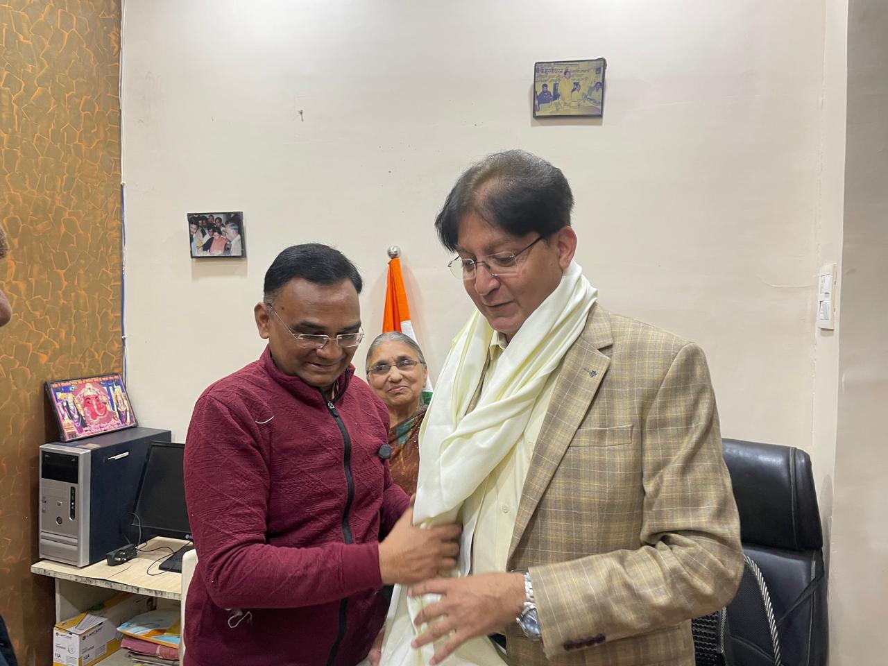 ग्वालियर (भास्करप्लस डाट काम)। जीबी पंत अस्पताल नईदिल्ली के कार्डियोलॉजी विभाग के मुखिया और वरिष्ठ हृदय रोग विशेषज्ञ डॉ. युसूफ जमाल शनिवार को नया बाजार स्थित वरिष्ठ भाजपा नेता स्व. राजकुमार बंसल के निज निवास पर पहुंचे। डॉ. युसूफ जमाल ने बंसल निवास पर पहुंचकर स्व. बंसल के दोनों सुपुत्रों और अन्य परिजनों से मुलाकात की। डॉ. युसूफ जमाल के बंसल निवास पर पहुंचने पर स्व. बंसल के दोनों पुत्रों धीरज बंसल और पंकज बंसल ने उनका शाल, श्रीफल और अंगवस्त्र भेंट कर स्वागत किया। डॉ. युसूफ जमाल काफी देर तक बंसल निवास पर रूके और स्व. बंसल के बड़े बेटे धीरज बंसल से परिजनों की कुशलक्षेम भी जानी।