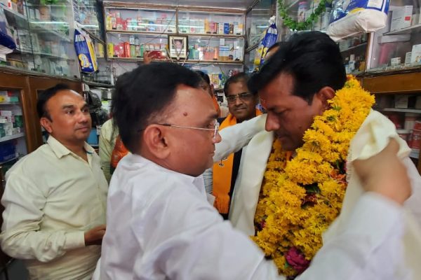 भारत सिंह कुशवाह के जनसंपर्क में उमड़े कार्यकर्ता, बंसल मेडीकल पर हुआ स्वागत